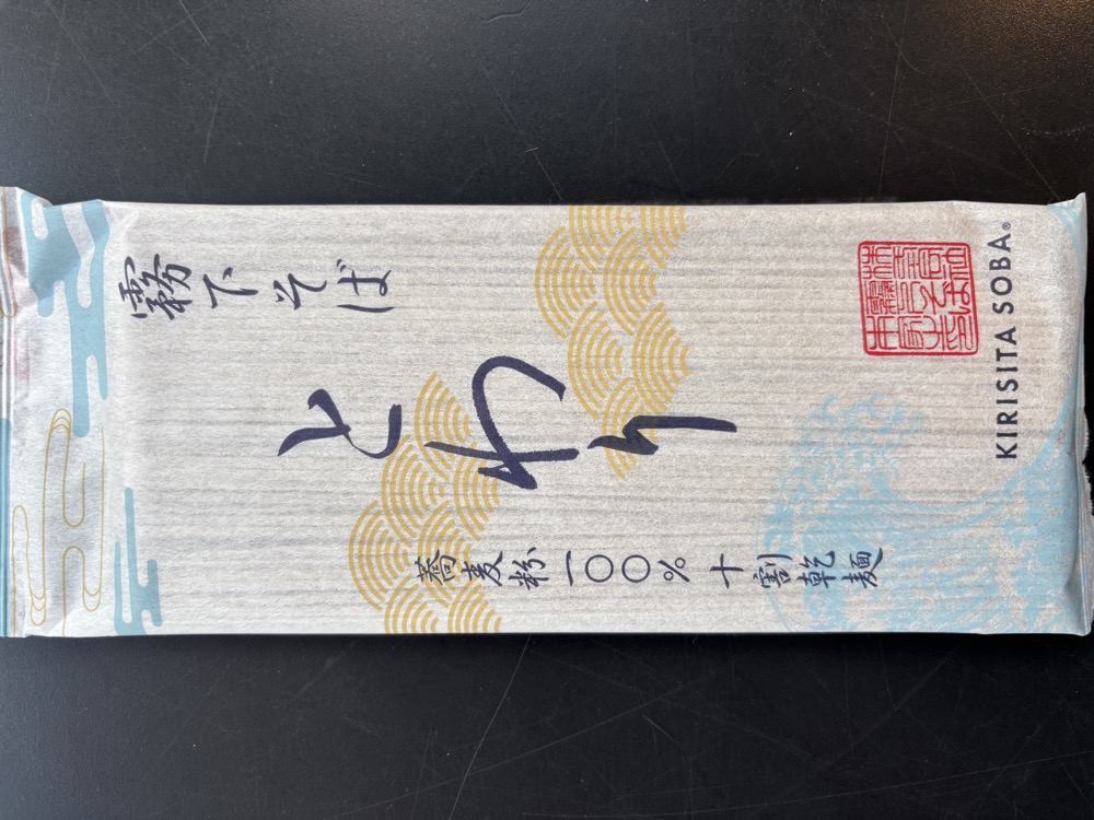 ▲「霧下そば とわり」(600円)を購入。これまで不可能といわれた[そば粉100%〈十割〉の乾麺]が、特殊加工により粘着性を強化したそば粉をつなぎにブレンドして完成したそうです。会社ホームページ内の紹介が、なかなか興味深くて勉強になります。