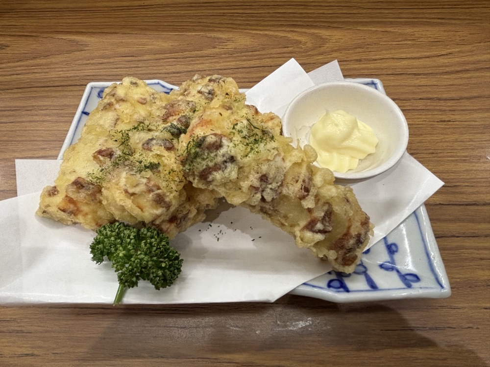 ▲「ちくわ磯辺揚」(430円)は、ボリュームたっぷり。サクサクした衣にマヨネーズの相性がぴったりです。