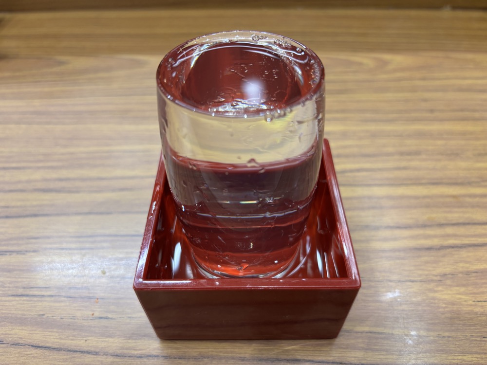 ▲次のお酒は、冷酒「高清水(秋田)」グラス(500円)にしました。こちらも〝盛りのよさ〟が感じられます。