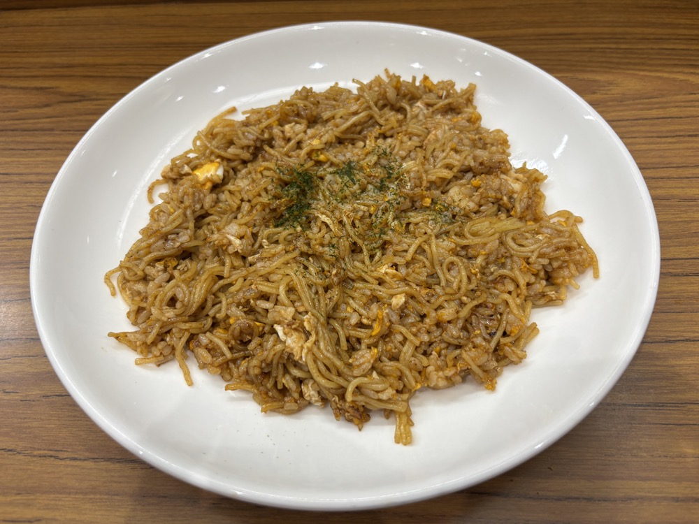 ▲仕上げの食事は「焼きそばめし」(650円)に。神戸市長田区発祥のソウルフードですが、東京下町で出会えるとは・・・。添えられたスプーンと小皿でおいしくいただきました。