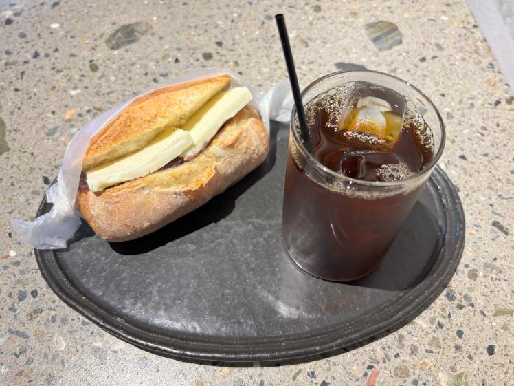 ▲コーヒーは、深煎り「錦糸ブレンド」(632円)をアイスで。人気メニューの1つ「あんバターサンド」(587円)もラッキーなことにありました。バターの塩気とあんこの甘さ、そしてしっかり目のパンの歯ごたえが絶妙のバランスでした。