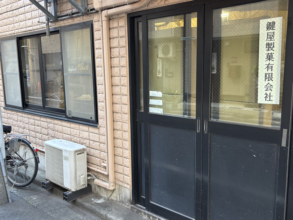 ▲こちらも、住宅ビルの1階が工場。稼働時間中には、ベルトコンベアー上をふ菓子が流れる様子が窓ガラス越しに道路からも見えます。(取材時には、稼働終了していました)