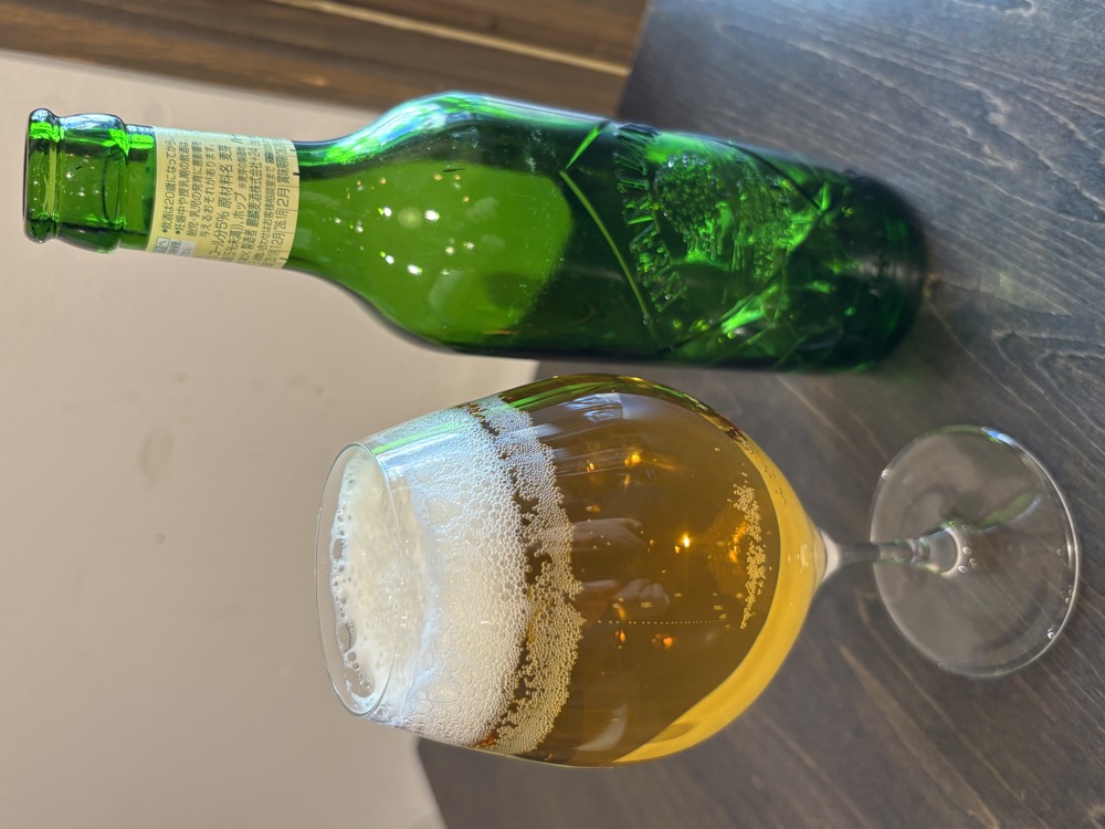 ▲「カフェタイム」(14:00~18:00)の時間帯だったので、アルコールメニューは限定的。瓶ビール(キリン・ハートランド、650円)にしました。